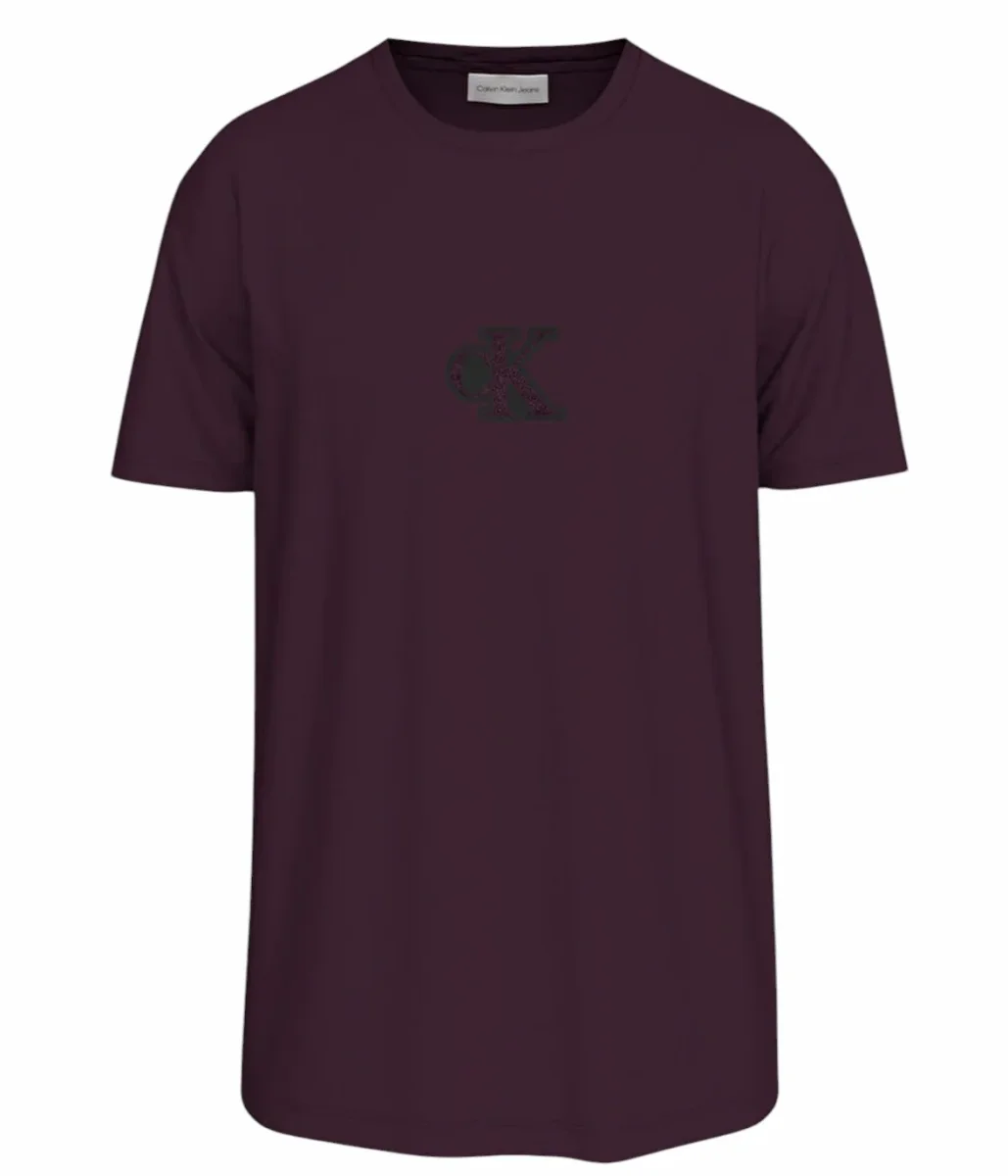 T-shirt uomo viola realizzata in cotone, modello girocollo e maniche corte, con logo in velluto applicato sul petto. Vestibilitร rilassata.