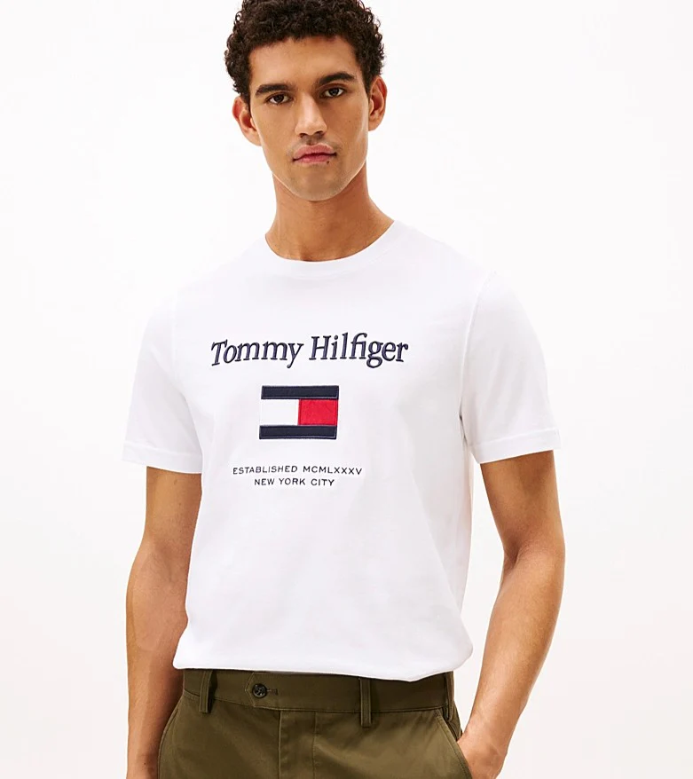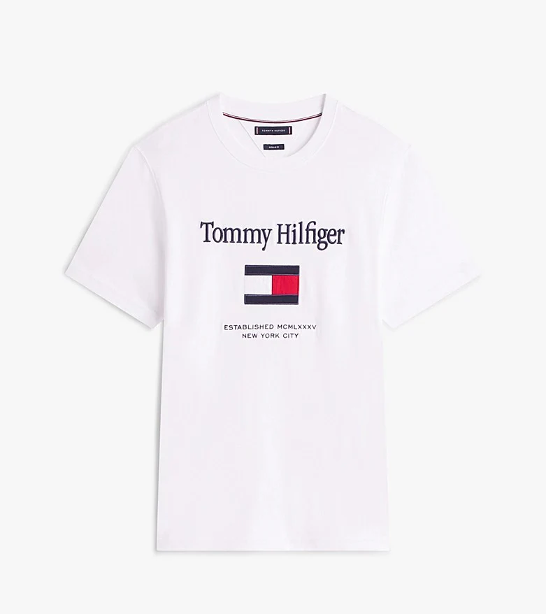 T-shirt uomo bianca in jersey di puro cotone dalla vestibilitร regolare con logo ricamato sul davanti.