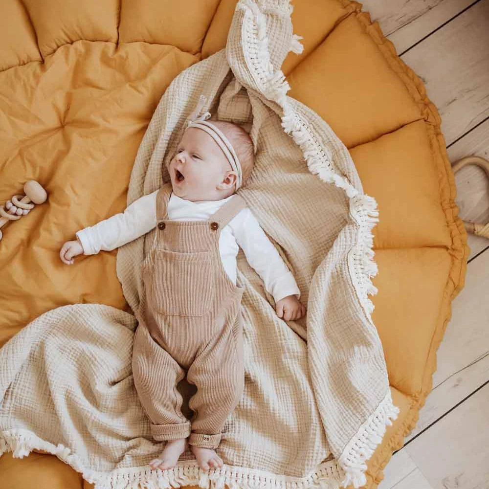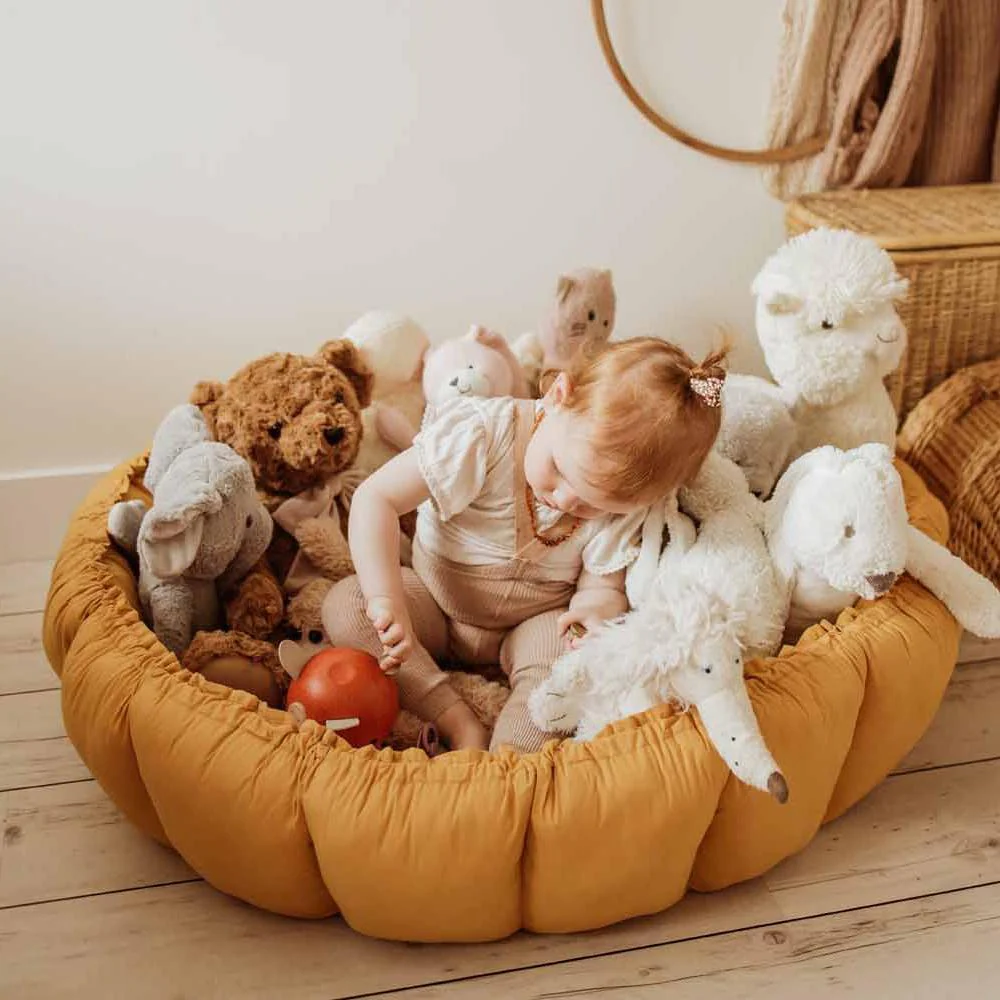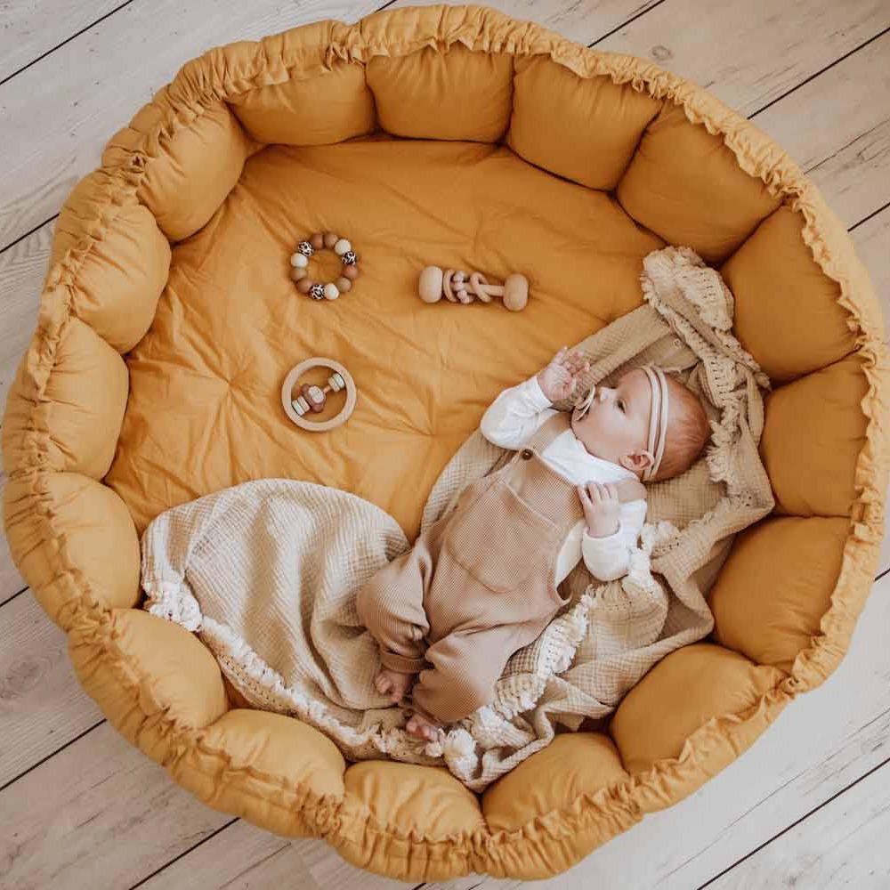 Questo speciale tappeto con imbottitura di circa 5 cm, ha l’anello esterno sollevabile a formare un nido raccolto e sicuro dove far riposare il bebรจ o praticare il Tummy Time.