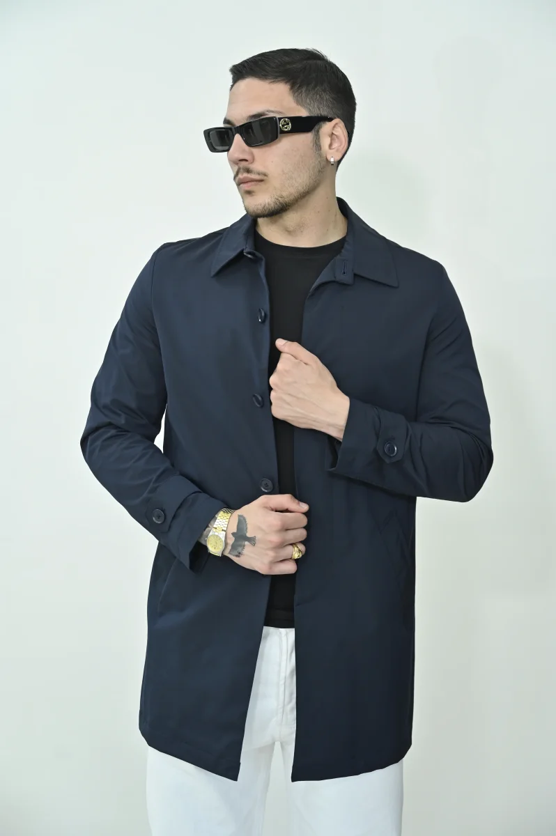 Il modello รจ alto 1,75 cm, pesa 73 kg e indossa una taglia 46. Trench mezza stagione Vestibilitร : Regolare Composizione: 98% cotone 2% spandex Realizzato in Italia