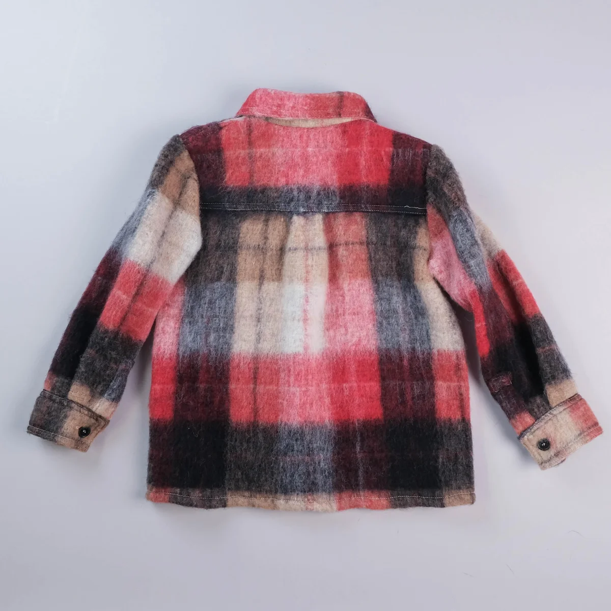 Camicia pesante in misto lana con motivo a quadri, tasche e chiusura frontale con bottoni.