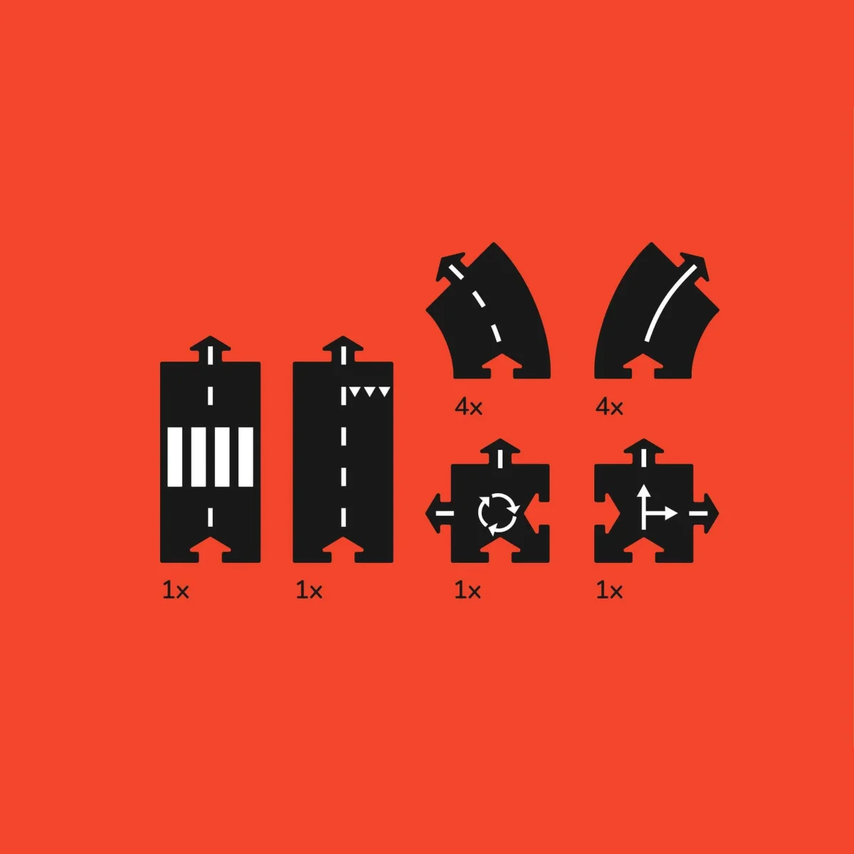 Circuito per automobiline, totalmente flessibile, con 8 curve, 2 pezzi retti, un’intersezione e una rotonda, che intratterranno il tuo bimbo nella costruzione e nel gioco.