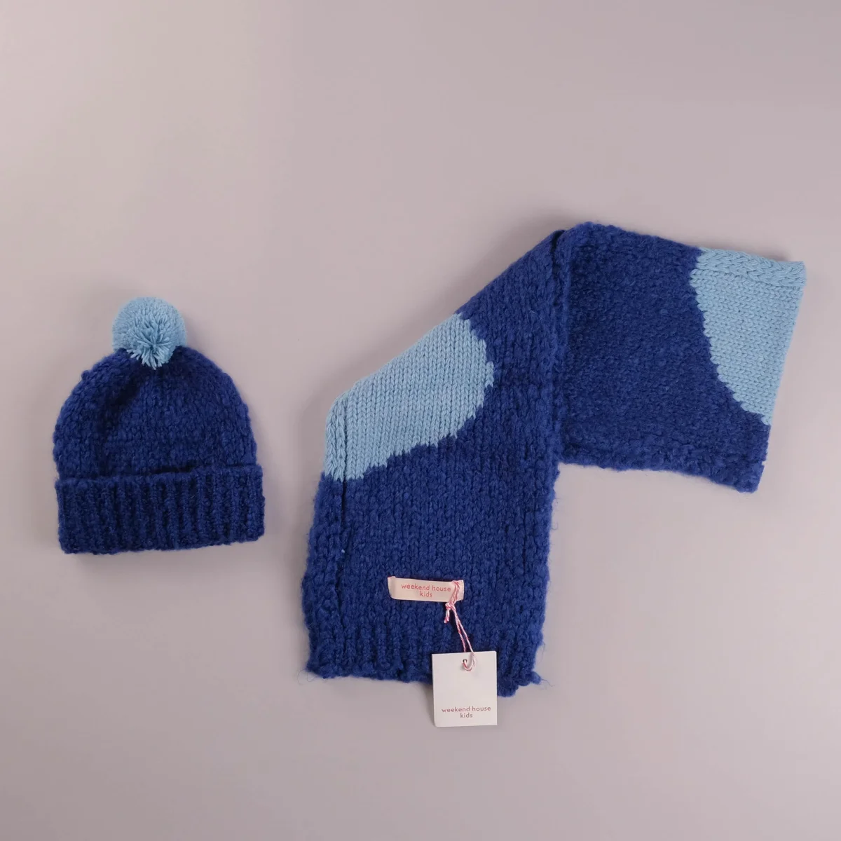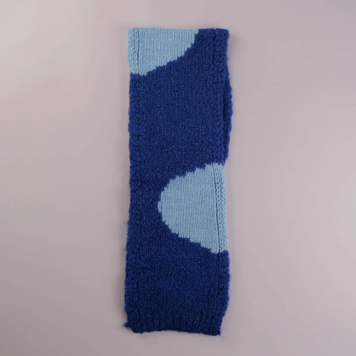 Sciarpa a pois giganti. Composizione: 40% acrilico, 30% lana, 20% mohair, 10% poliamide