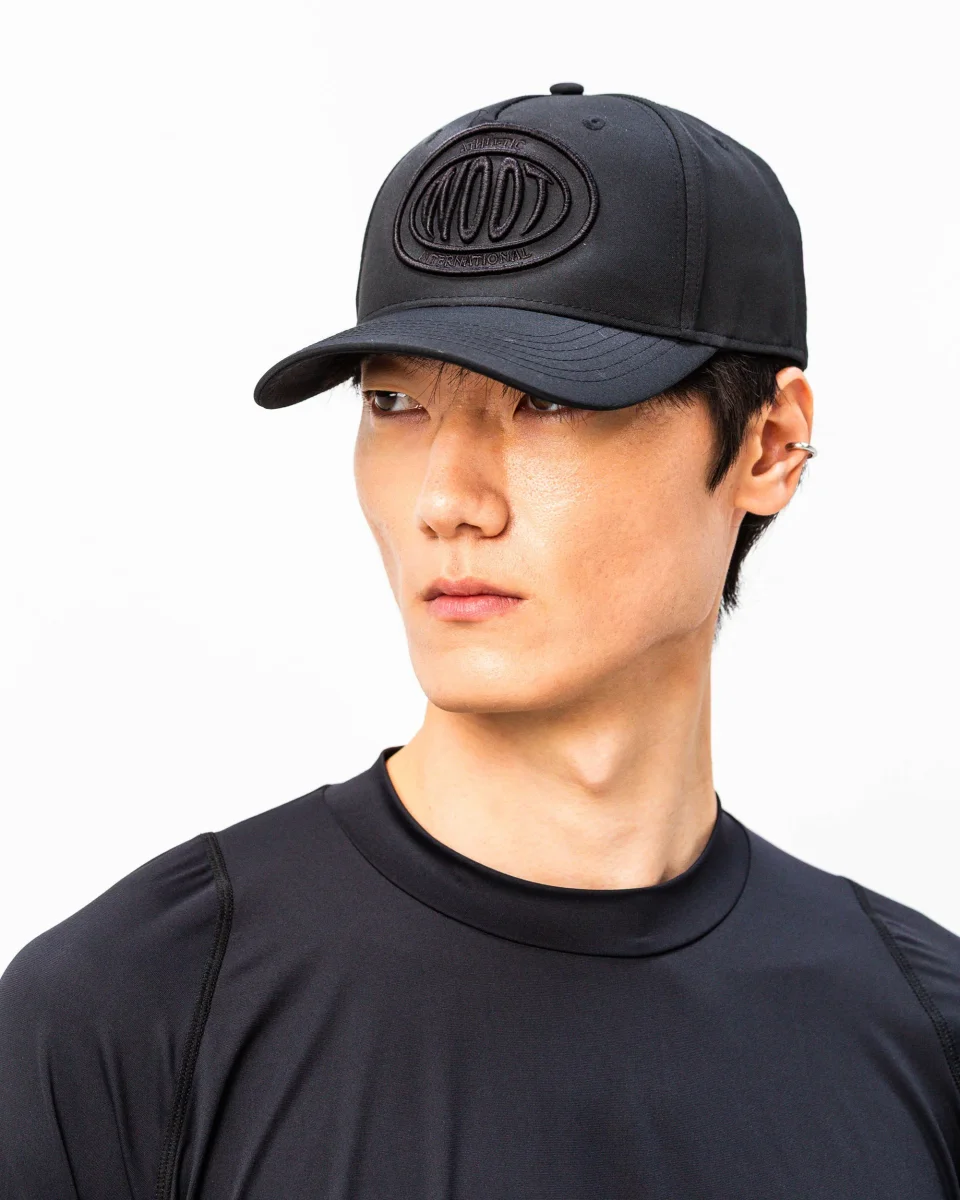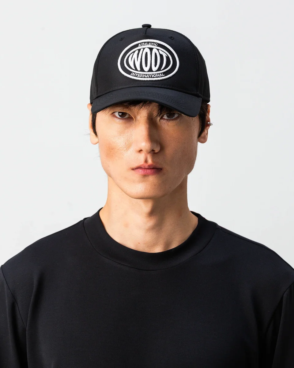 Cappello strutturato a 5 pannelli in poliestere riciclato con protezione UV UPF50+ e trattamento idrorepellente, occhielli cuciti, visiera media, fascia antisudore dry-tech e chiusura a strappo in gomma. Stampa 3D “WU”