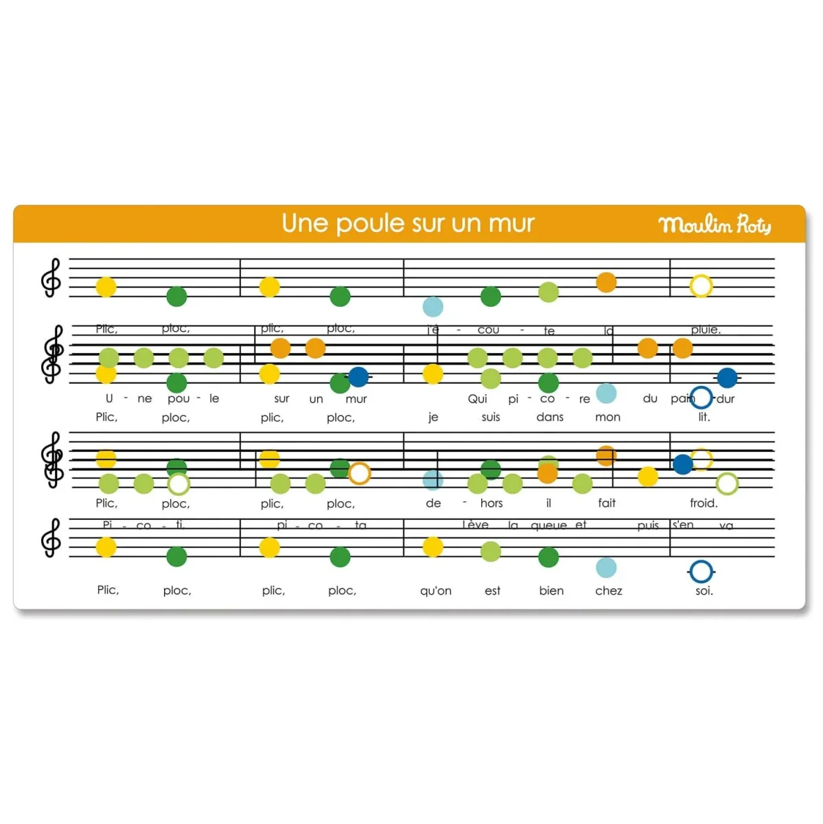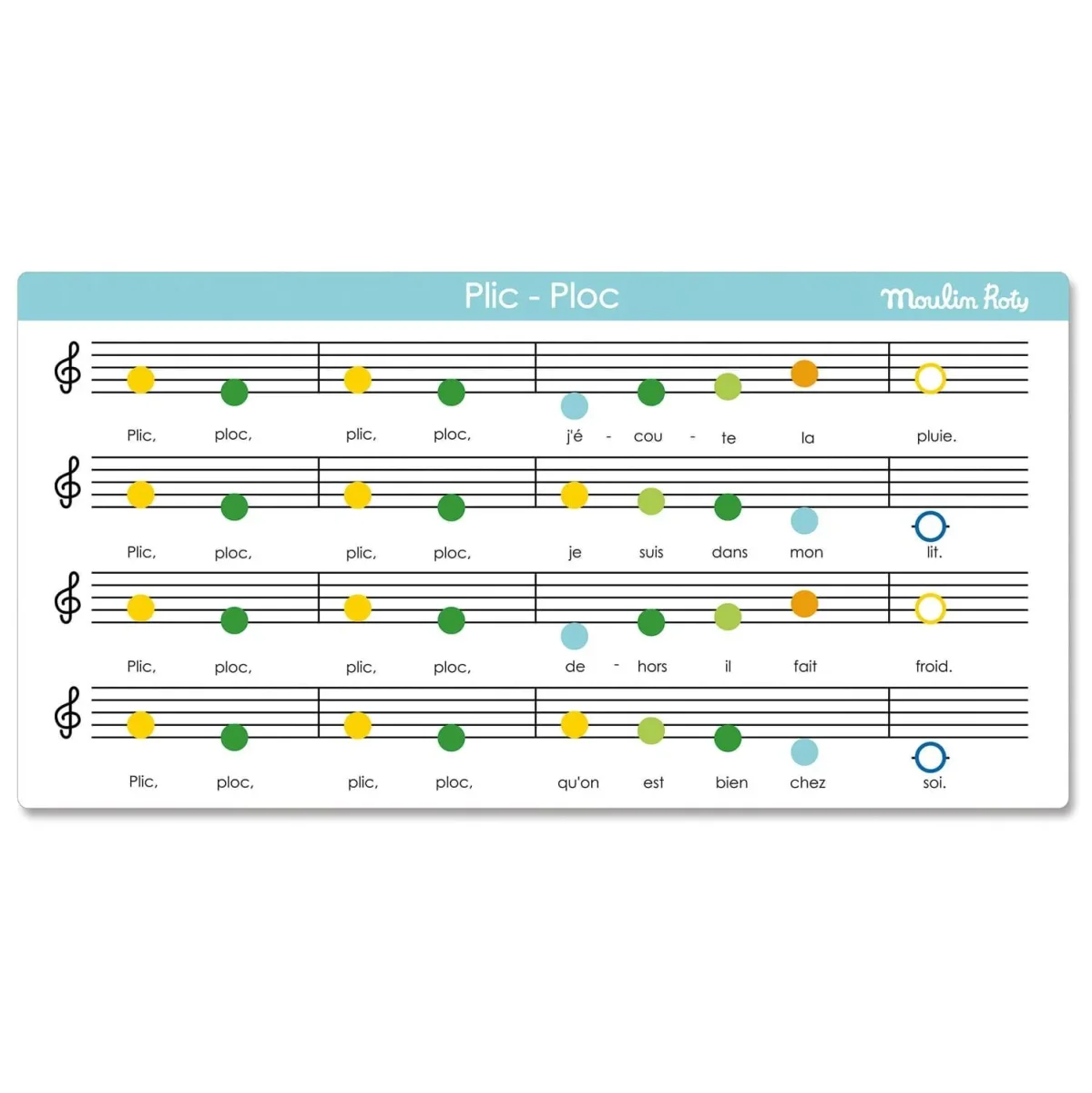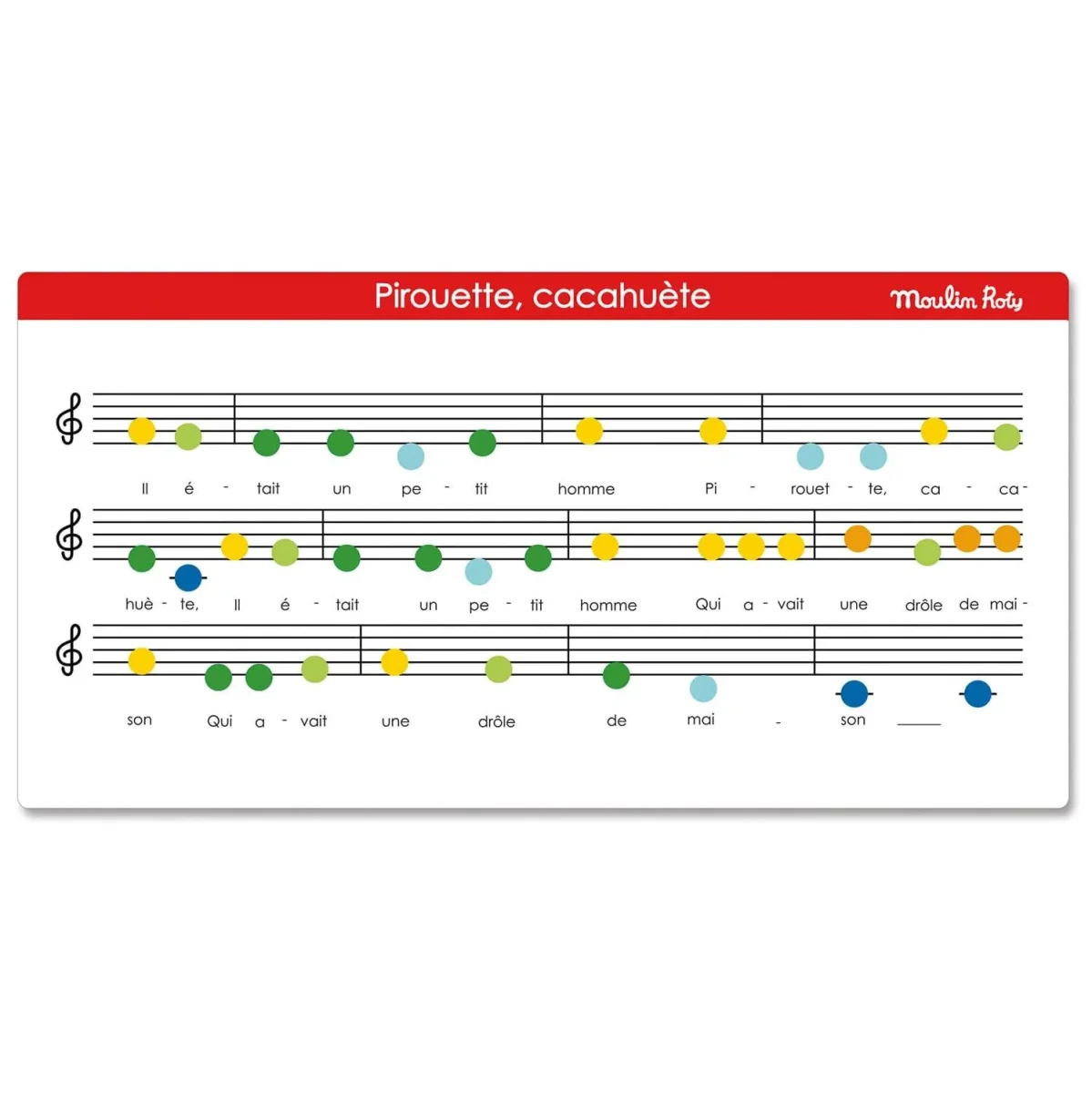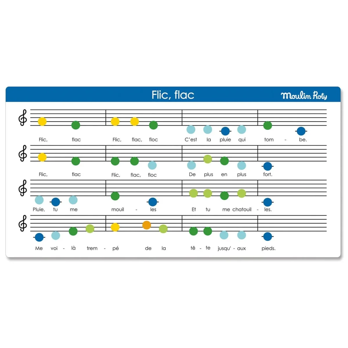 Nella confezione dello xilofono ci sono anche sei spartiti, oltre a due bacchette.