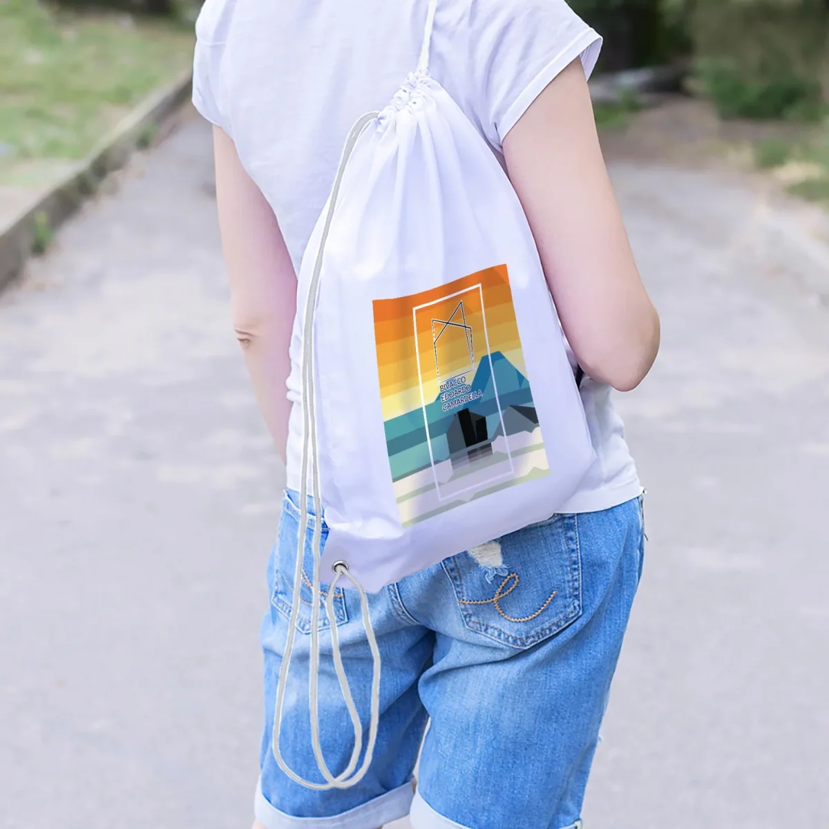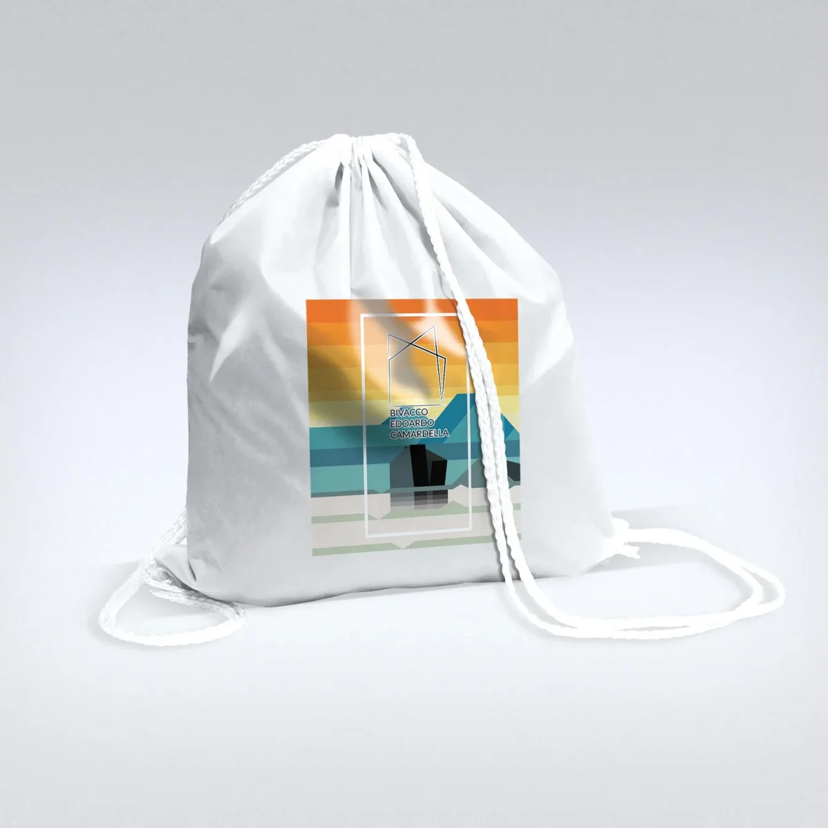 Zainetto leggero, sacca sport, portascarpe (in colorazione bianca) con comoda chiusura a strozzo personalizzato Bivacco E. Camardella.