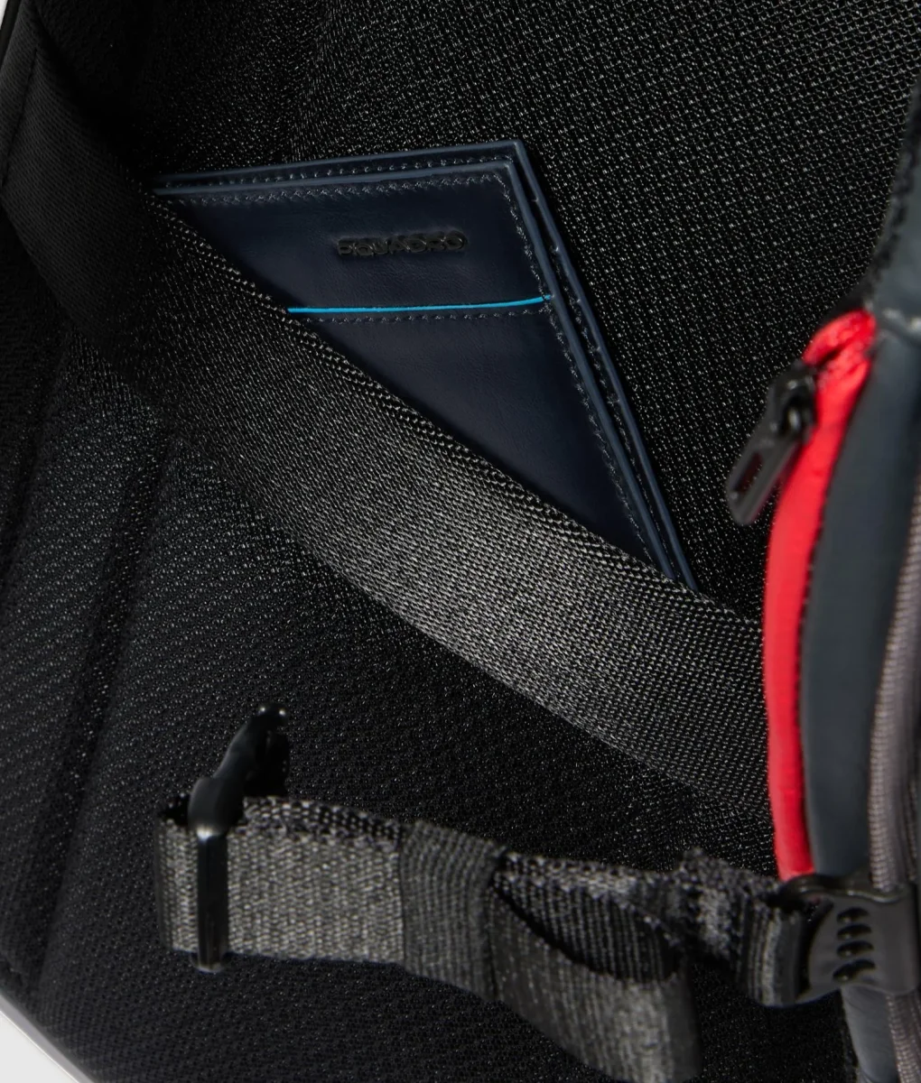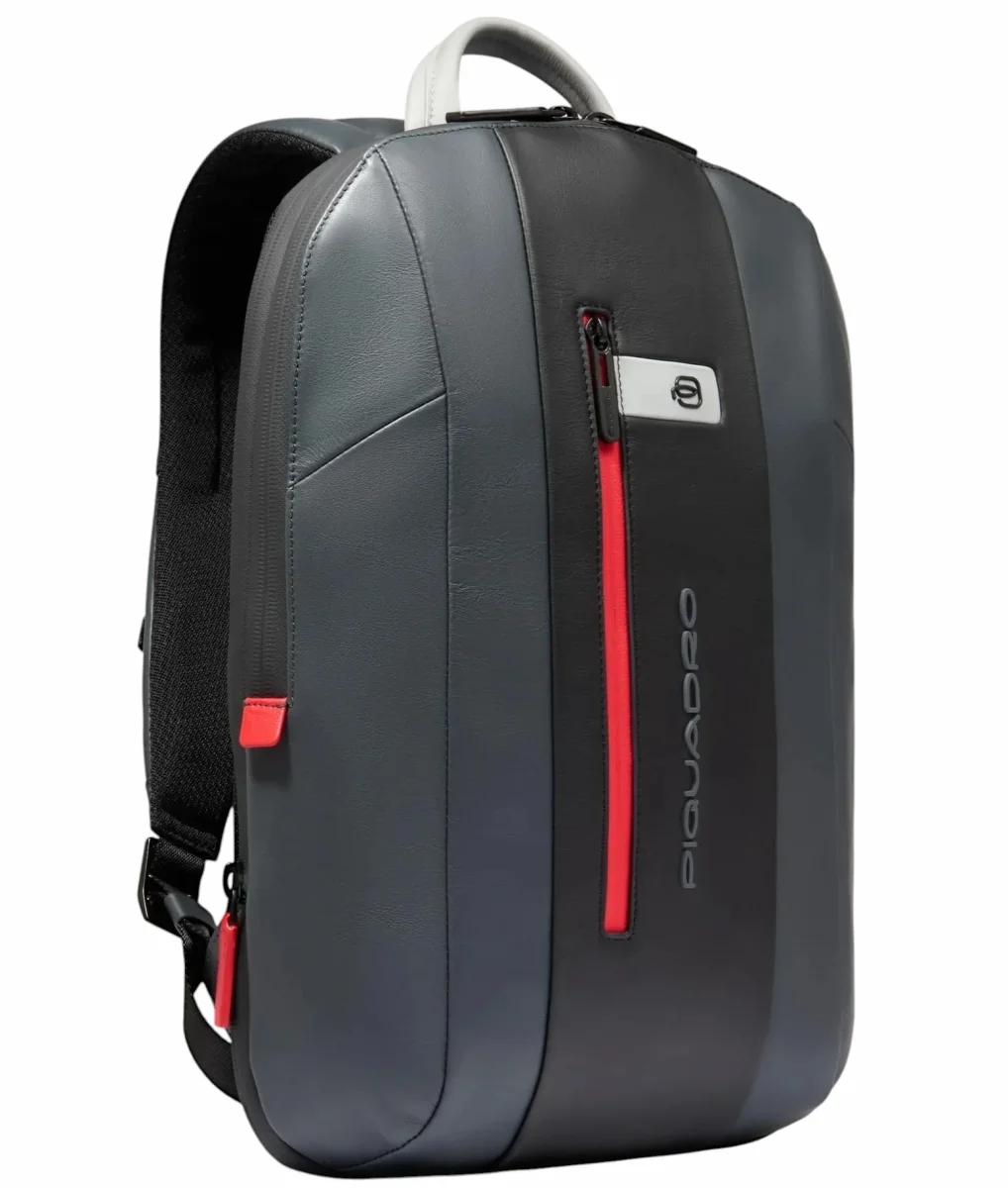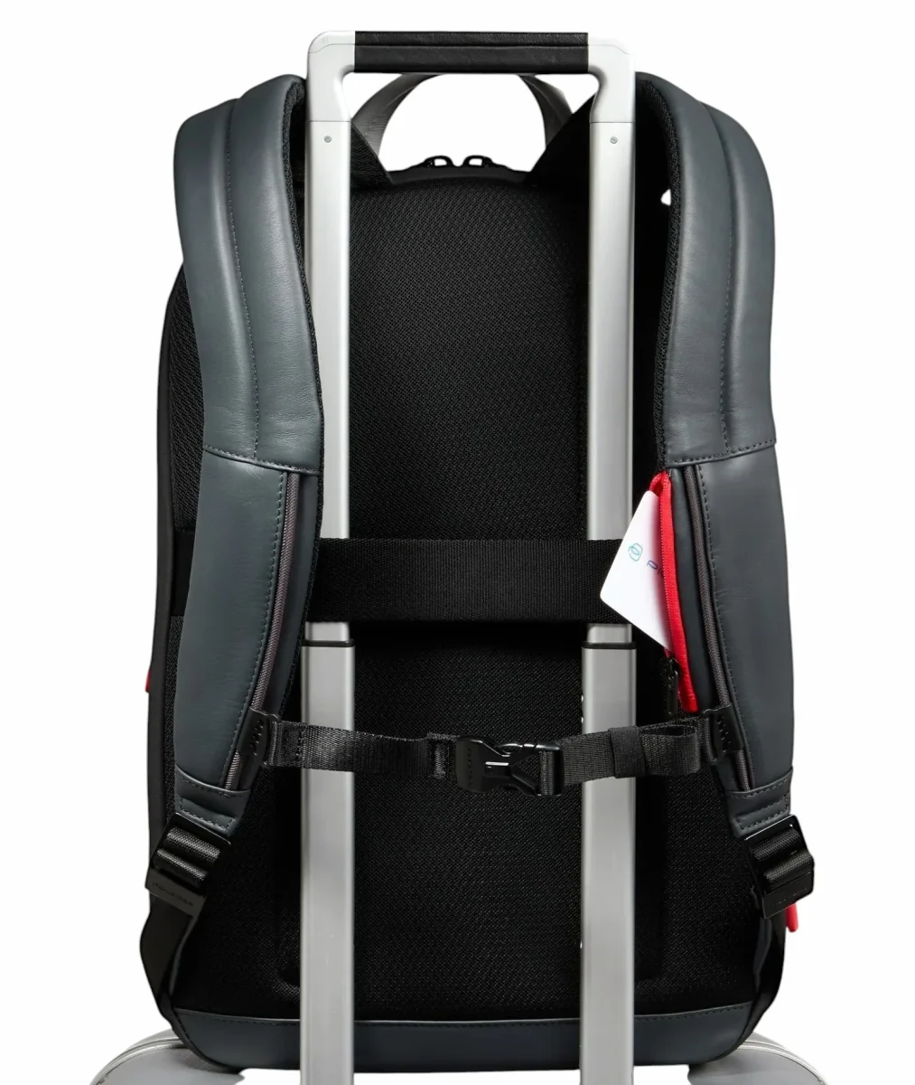 Zaino uomo grigio espandibile in pelle porta pc e porta iPadยฎ con protezioni antiurto e RFID, cinghia pettorale e tasca per AirPodsยฎ