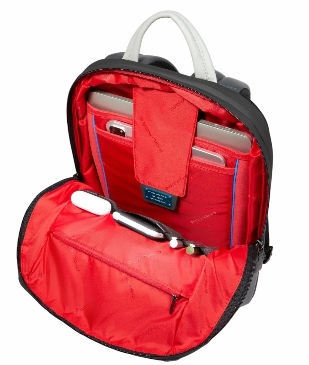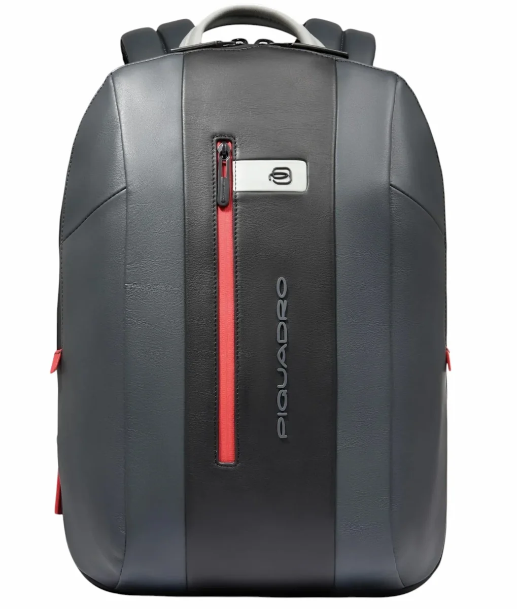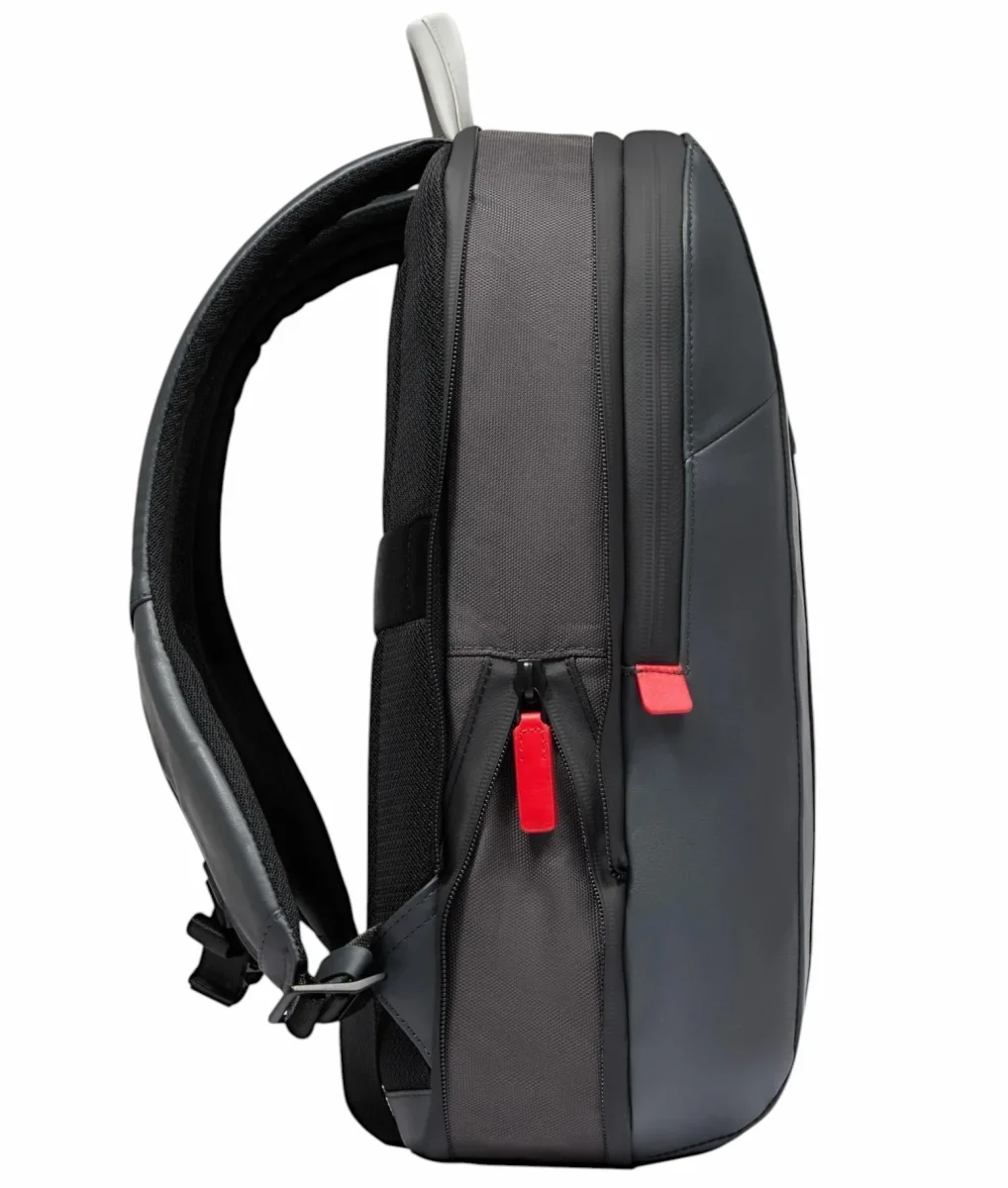 Zaino uomo grigio espandibile in pelle porta pc e porta iPadยฎ con protezioni antiurto e RFID, cinghia pettorale e tasca per AirPodsยฎ