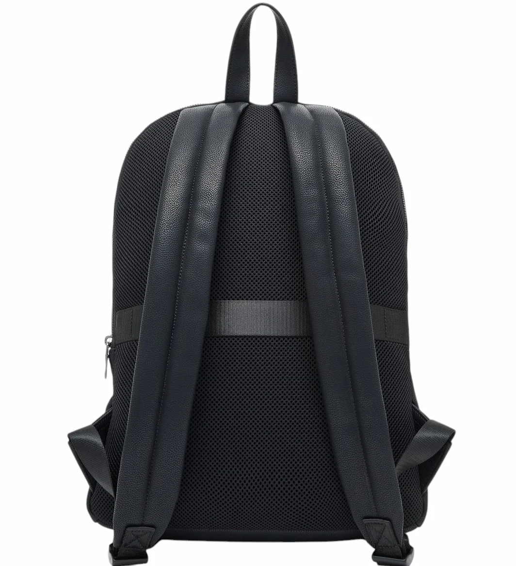 Zaino uomo nero realizzato in ecopelle resistente, l’accessorio perfetto per chi cerca un connubio tra funzionalitร e stile. Questo zaino si distingue per il design minimalista e le linee pulite, con una pratica tasca frontale con patta che aggiunge un tocco distintivo e offre spazio extra. Lo scomparto principale con chiusura a zip รจ ideale per contenere tutto l’essenziale per la giornata, mentre gli spallacci regolabili garantiscono il massimo comfort, con discreto logo impresso sulla patta frontale.