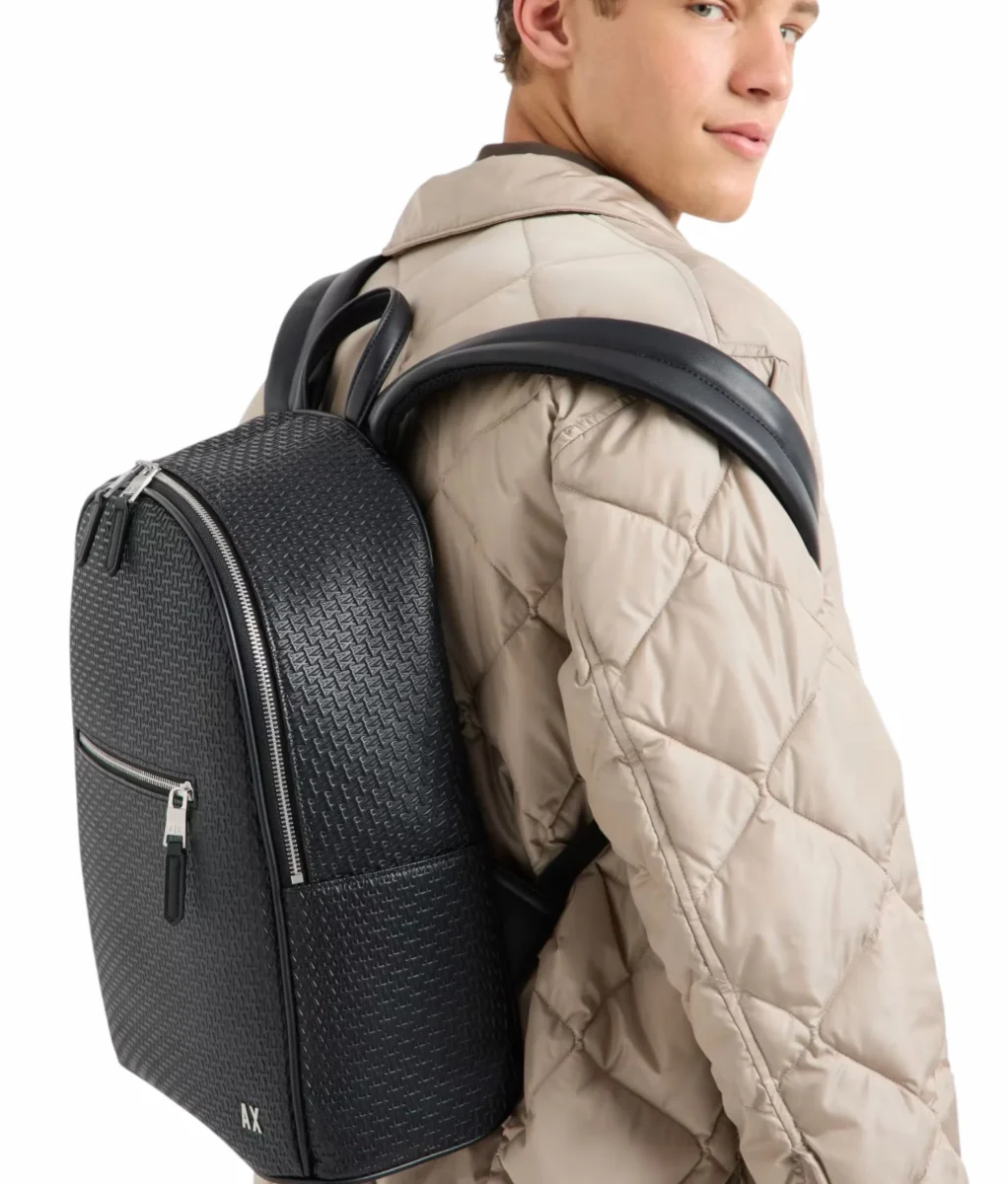 Zaino uomo nero, comodo, pratico ma anche trendy: coniuga perfettamente stile ed essenzialitร . Realizzato in materiale resistente con lavorazione a rilievo e logo all-over, presenta chiusura a zip, tasca esterna con zip, manico superiore e spallacci regolabili.